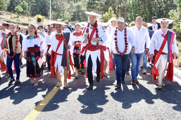 “Estoy muy contento de estar aquí a fin de entregar una obra integral, bonita y de calidad, que ayuda a las y los habitantes a sacar las cosechas y comercializar sus productos, a trasladarse de manera segura y rápida para realizar las actividades sociales, escolares, incluso de atención a la salud. Este camino no solo debe ser visto como una construcción de asfalto sino como un símbolo de unidad y acercamiento entre las comunidades”, apuntó.