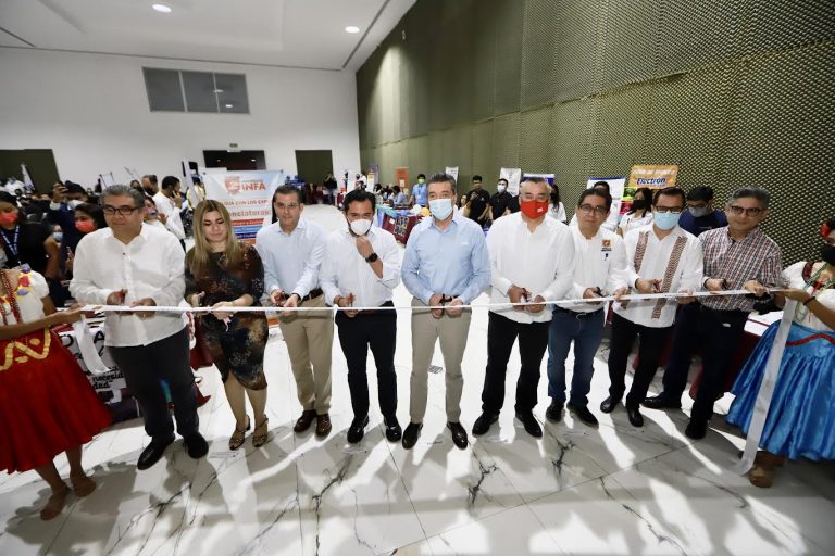 En su intervención, el secretario de Economía y del Trabajo (SEyT), Carlos Alberto Salazar Estrada, informó que en esta Feria Nacional del Empleo para la Inclusión Laboral 2022, se realizarán seis talleres y ofertarán más de 780 plazas laborales, al tiempo de detallar que, gracias al esfuerzo entre organismos gubernamentales, empresas y universidades, se ha logrado una amplia asistencia de solicitantes.