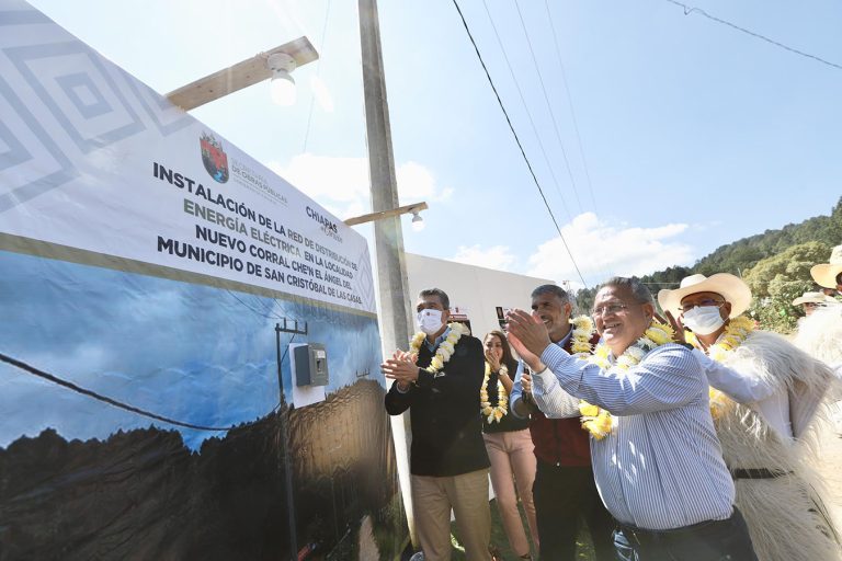 En respuesta a una petición añeja, el gobernador Rutilio Escandón Cadenas hizo justicia social a las familias de la localidad Nuevo Corral Chén el Ángel, en el municipio de San Cristóbal de Las Casas, con la instalación de la red de distribución de energía eléctrica, mediante la cual se cumple el compromiso de su gobierno de ampliar la cobertura de este servicio básico en comunidades marginadas y que por años estuvieron en el abandono.