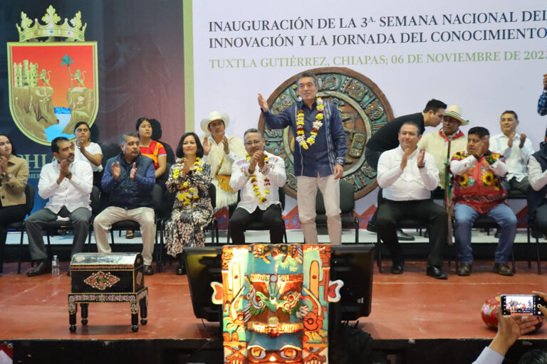 En la inauguración de la Tercera Semana Nacional del Conocimiento y la Innovación, y la Jornada del Conocimiento Chiapas 2.3, el gobernador Rutilio Escandón Cadenas reconoció la importancia de realizar este encuentro científico, porque posiciona a la ciencia y la tecnología como los ejes fundamentales para desarrollar proyectos innovadores a favor de la construcción de un Chiapas y un México más justos e incluyentes, prósperos y con igualdad de oportunidades.