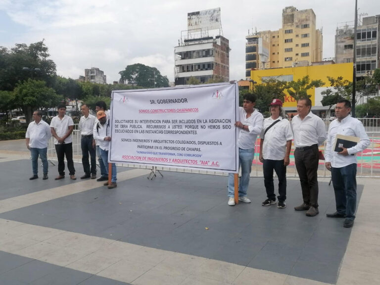 30 de octubre de 2025 | Tuxtla Gutiérrez. Integrantes de la Asociación de Ingenieros y Arquitectos de Chiapas realizaron una manifestación pacífica para denunciar su exclusión en los proyectos de obra pública estatal, acusando que las licitaciones están dirigidas a grupos específicos.