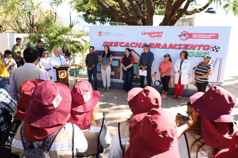 Acompañado del Secretario de Salud de Chiapas, José Manuel Cruz Castellanos, este viernes el presidente municipal de Tuxtla Gutiérrez, Carlos Morales Vázquez, dio inicio a las acciones de descacharramiento en 500 manzanas en barrios y colonias del centro de la capital chiapaneca, con el objetivo de disminuir los criaderos de mosquitos y con ello los riesgos de enfermedades transmitidas por este vector como el dengue.
