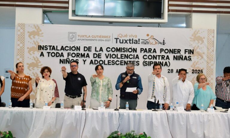 Tuxtla Gutiérrez, Chis., 26 de abril.- Con el compromiso de fortalecer las acciones en favor de la niñez y adolescencia, el Ayuntamiento de Tuxtla Gutiérrez llevó a cabo este viernes la instalación de la Comisión para Poner Fin a Toda Forma de Violencia contra Niñas, Niños y Adolescentes (COMPREVNNA), así como la Tercera Sesión Ordinaria del Sistema de Protección Integral de las Niñas, Niños y Adolescentes (SIPINNA) Tuxtla.