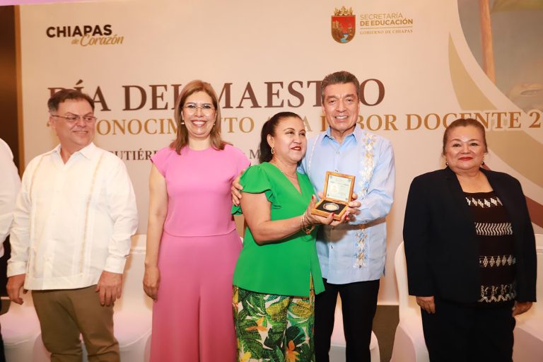 “En México y Chiapas, las maestras y los maestros son combatientes permanentes del analfabetismo, porque con su sabiduría dentro de las aulas hacen lo posible para sacar adelante el desarrollo y progreso de los pueblos. Donde quiera que se encuentren, hay avance y honran con dignidad su labor al cimentar bases firmes en favor de la educación de la niñez y la juventud”, afirmó el gobernador Rutilio Escandón Cadenas en el marco de la celebración conmemorativa al Día de la Maestra y el Maestro.