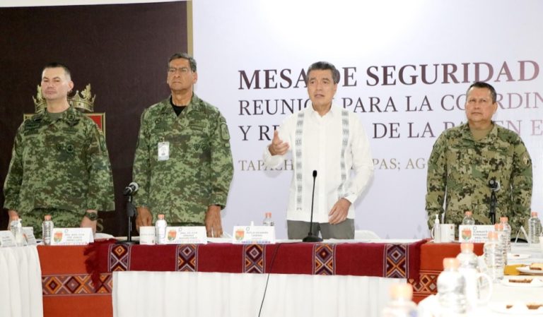 En la Mesa de Coordinación Estatal para la Construcción de la Paz y la Seguridad, realizada en Tapachula, el gobernador Rutilio Escandón Cadenas destacó que mediante un esfuerzo conjunto entre los gobiernos Estatal y Federal se brinda ayuda humanitaria y atiende de manera oportuna y permanente las necesidades de alimentación, salud y educación, entre otras, de las personas que, por alguna razón, han sido desplazadas de sus comunidades.