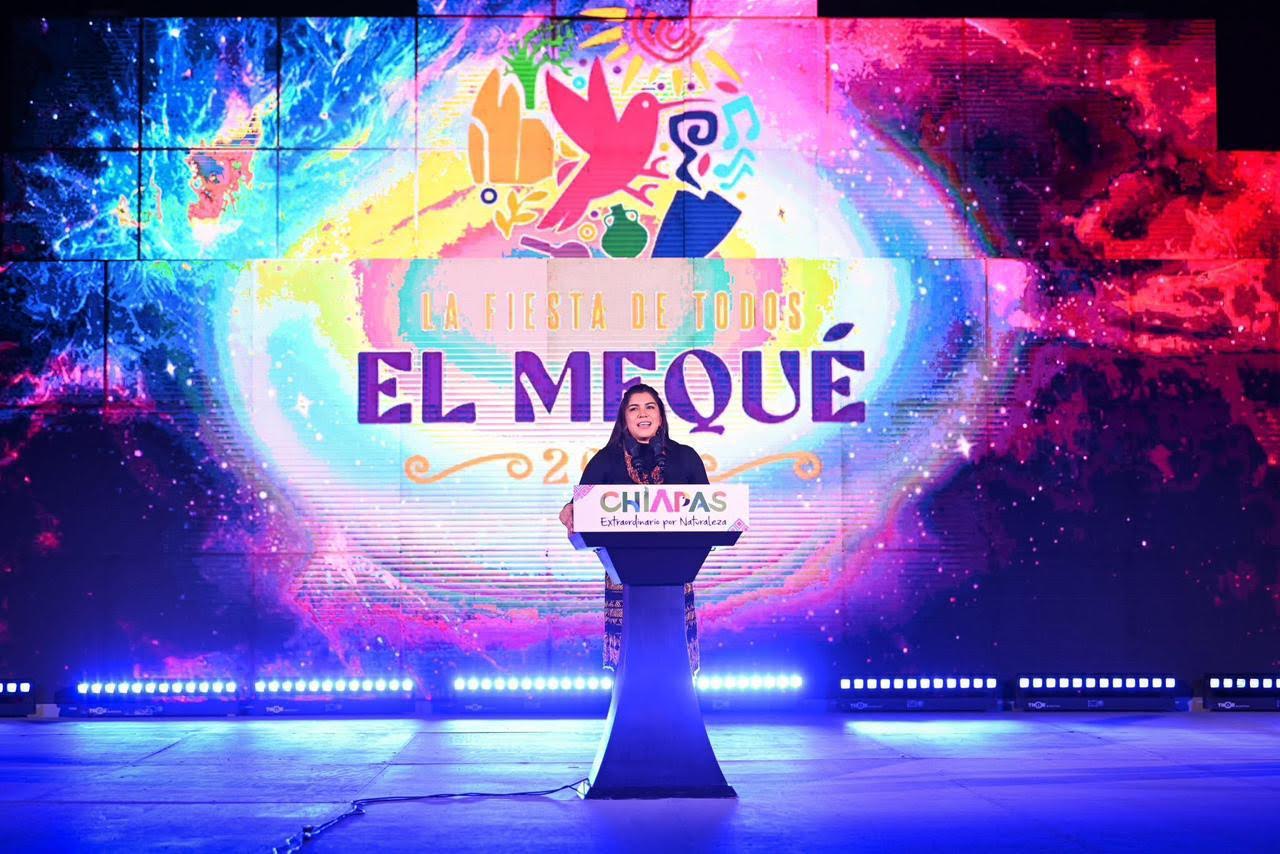 El gobernador Eduardo Ramírez Aguilar, acompañado de su familia y de cientos de asistentes reunidos en el parque Bicentenario de Tuxtla Gutiérrez, acudió a la inauguración de La Fiesta de Todos “El Mequé”, que abrió con un magno espectáculo lleno de color, música y expresiones artísticas inspiradas en las raíces, costumbres y tradiciones de Chiapas.