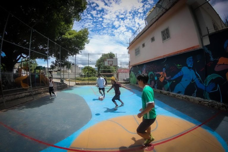 Para Leonardo, uno de los jóvenes beneficiados con esta intervención, esta obra le llama mucho la atención “ pues da mucha tranquilidad venir después de la escuela y ver un parque colorido, conocer a nuevos amigos y convivir con ellos”.