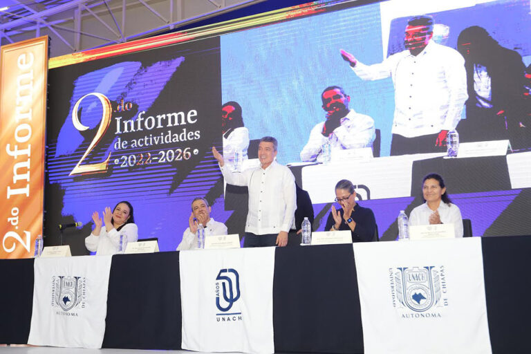 El gobernador Rutilio Escandón Cadenas asistió al informe de Actividades de la Rectoría de la Universidad Autónoma de Chiapas (Unach), donde destacó que es satisfactorio constatar que hoy la máxima casa de estudios es una institución educativa renovada y sólida en los diferentes rubros, sin deudas ni problemas financieros y con una gran presencia debido a los altos estándares de calidad académica que se brinda a la juventud chiapaneca.