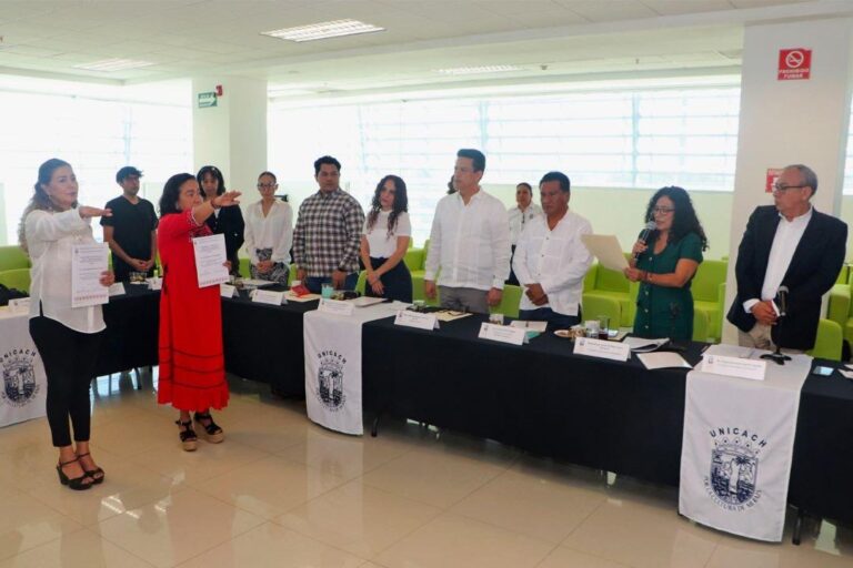 Tuxtla Gutiérrez, Chis., 27 FEB.-En una sesión que se llevó a cabo con total apego a la legislación universitaria, el Honorable Consejo Universitario de la Universidad de Ciencias y Artes de Chiapas (UNICACH) aprobó por unanimidad la designación de nuevos integrantes para su Honorable Junta Directiva.