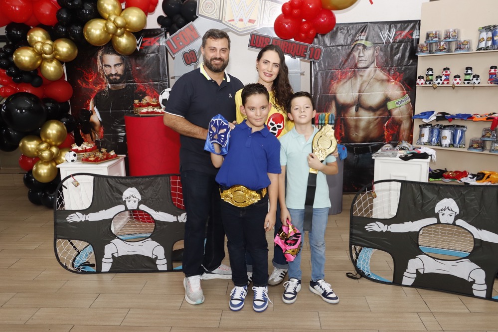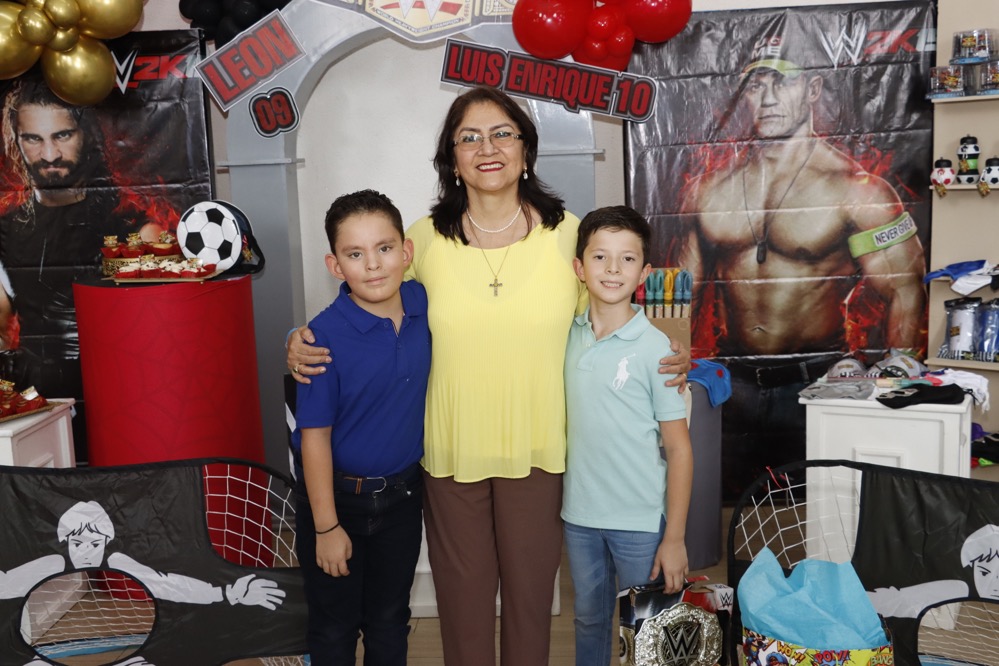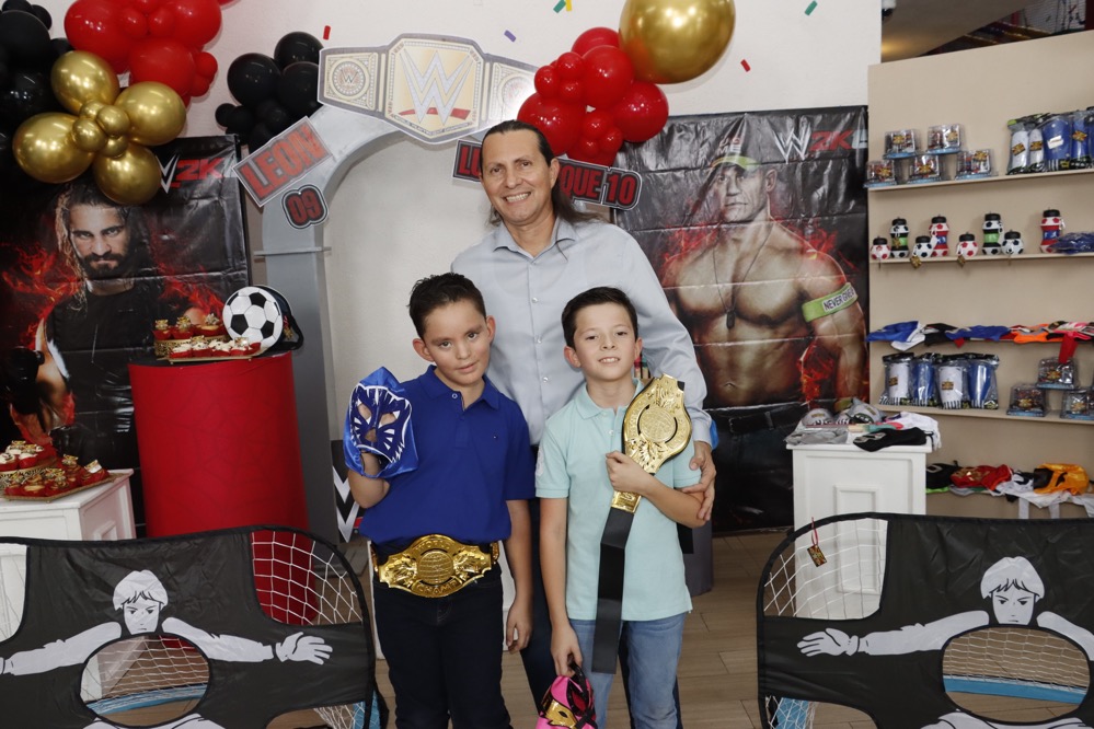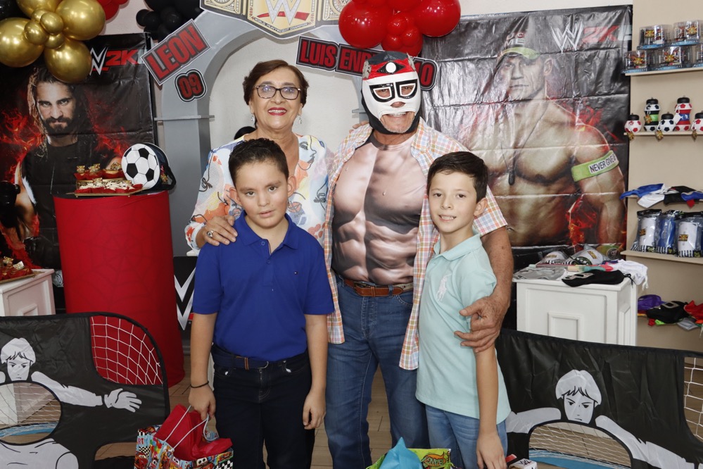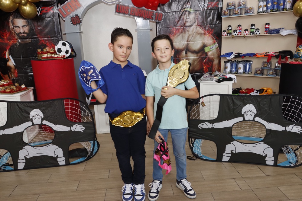 Al estilo de la “WWE” celebraron su cumpleaños los hermanos, Luis Enrique y León Centeno, en un conocido lugar, donde recibieron regalos y fuertes abrazos de los invitados, que con gusto llegaron puntuales para no perderse ningún detalle que se presentó como espectáculo en el cuadrilátero, siendo un momento emocionante para los pequeños, quienes disfrutaron del show, gracias a las dinámicas que realizaron los luchadores profesionales.