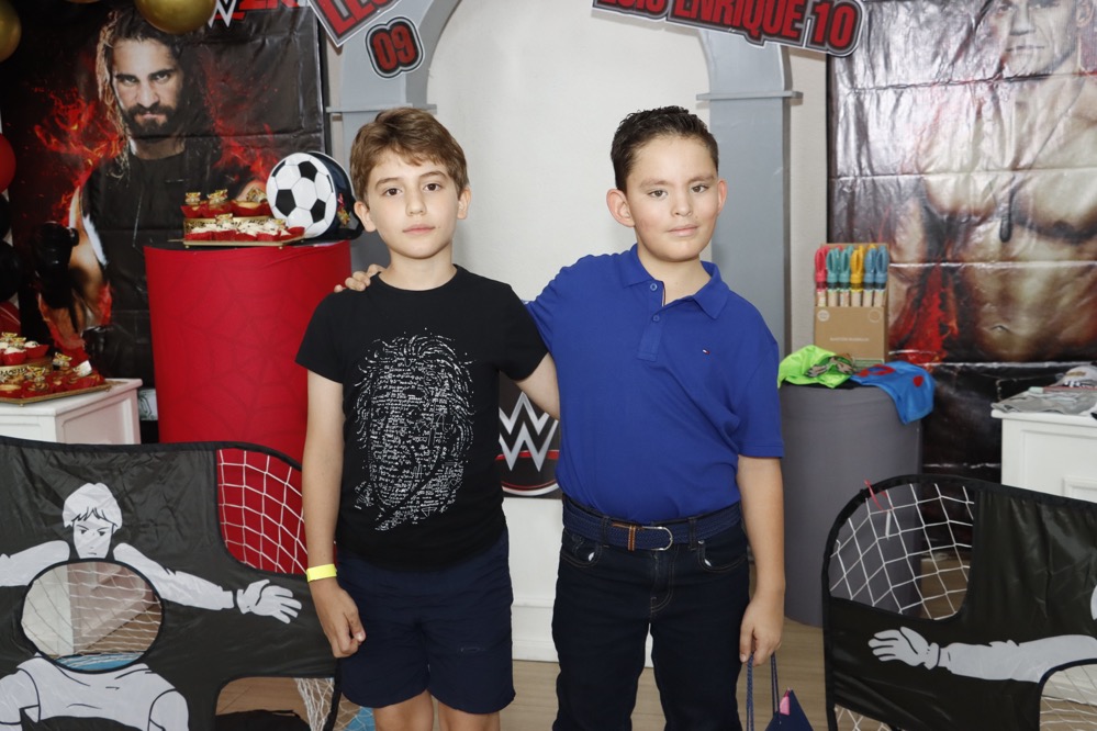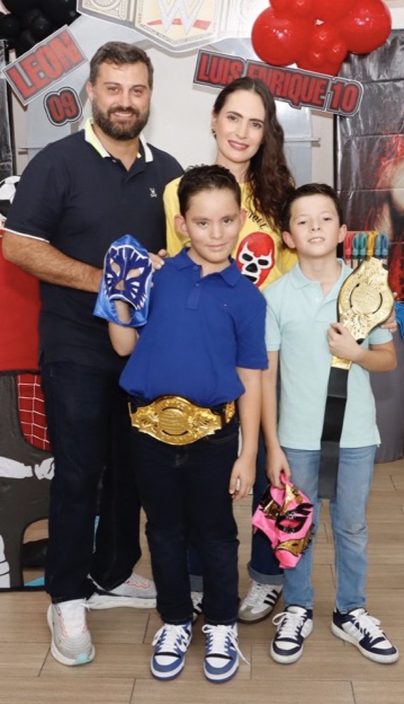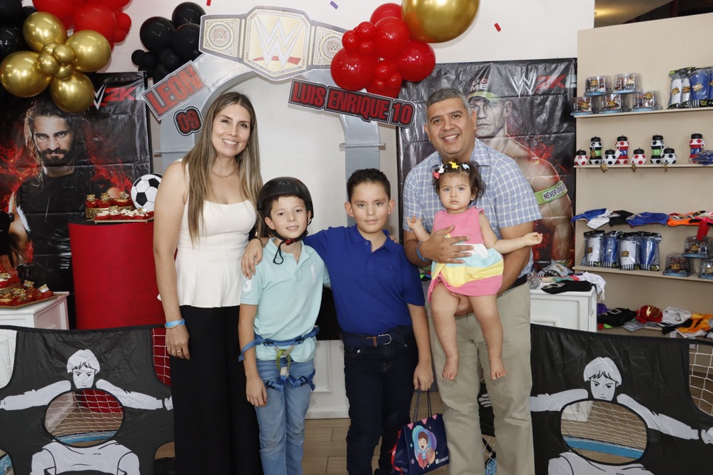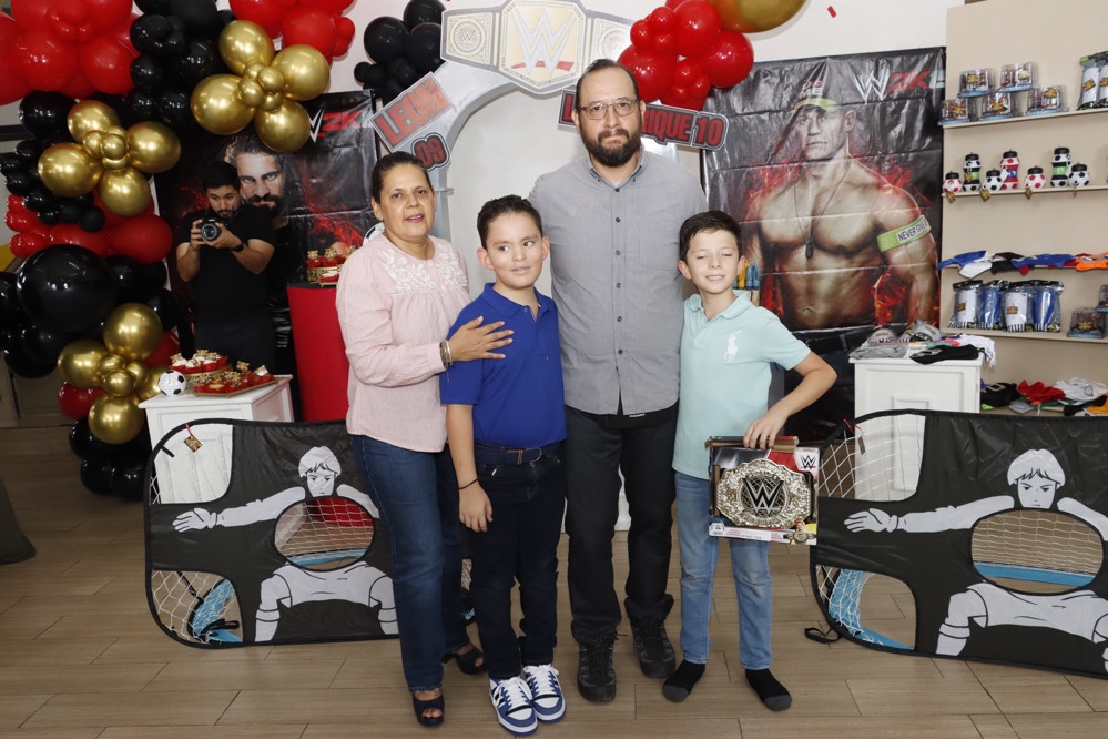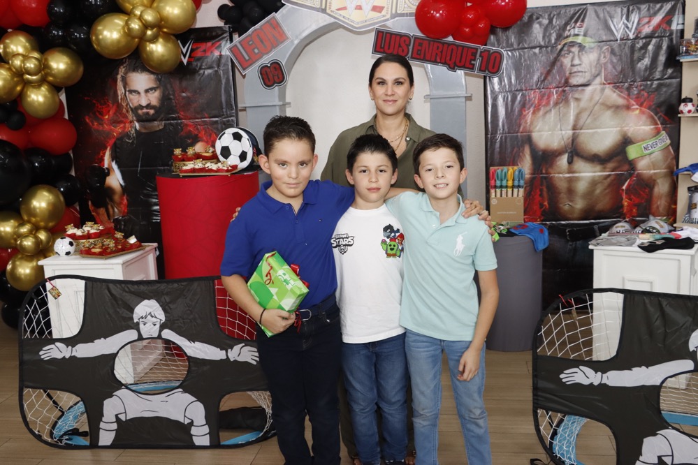 Al estilo de la “WWE” celebraron su cumpleaños los hermanos, Luis Enrique y León Centeno, en un conocido lugar, donde recibieron regalos y fuertes abrazos de los invitados, que con gusto llegaron puntuales para no perderse ningún detalle que se presentó como espectáculo en el cuadrilátero, siendo un momento emocionante para los pequeños, quienes disfrutaron del show, gracias a las dinámicas que realizaron los luchadores profesionales.