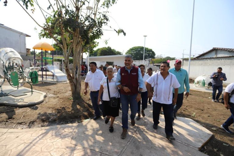 El secretario de Obras Públicas del Estado, Ángel Torres, constató el avance del parque infantil en el Barrio Guadalupano, en el municipio de Villa Comaltitlán, lo que significa justicia social a niñas y niños de la localidad, pues era un espacio de más de tres décadas sin ser rehabilitado.