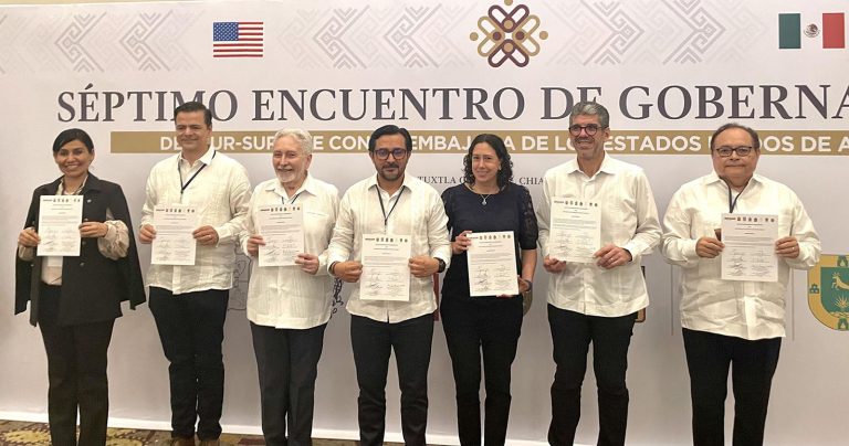 Durante la firma del acuerdo, estuvieron presentes los Gobernadores y Secretarios de Desarrollo Económico de los siete Estados del Sur-Sureste; Renata Arvizu Manzano, Líder de Marketplace de Amazon México; y Ken Salazar, Embajador de los Estados Unidos de América en México, como testigo de honor.