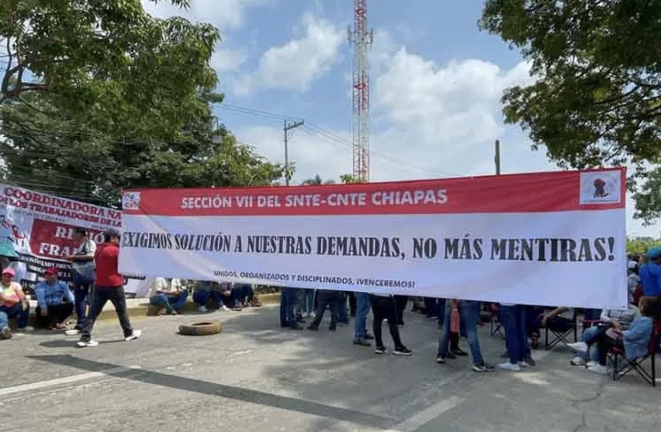 La mañana de este viernes, integrantes de la Sección 7 del SNTE-CNTE realizaron bloqueos en los principales accesos de Tuxtla Gutiérrez como parte del paro nacional de 24 horas convocado por el magisterio disidente en todo el país.
