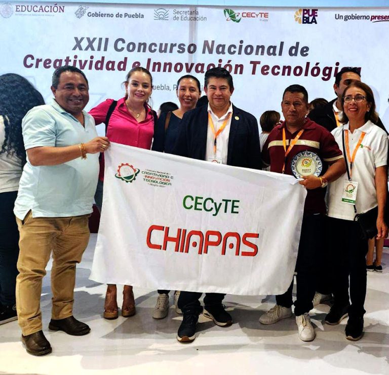 Docentes del Colegio de Estudios Científicos y Tecnológicos y Telebachillerato Comunitario de Chiapas (CECyTE-TBC Chiapas), del Plantel 34 Real del Bosque, ubicado en el municipio de Tuxtla Gutiérrez, ganaron el tercer lugar al participar con el prototipo didáctico Módulo Básico de un Sistema de Refrigeración, en el XXII Concurso Nacional de Creatividad e Innovación Tecnológica 2023, realizado del 28 al 30 de junio, en la ciudad de Puebla.