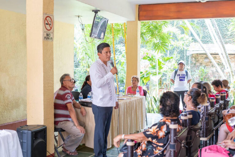 Tapachula, Chiapas, 04 de mayo.- Con aplausos y con gritos al unisono de ¡Presidente, presidente!, decenas de profesoras y profesores jubilados de la Delegación D-IV-3 de la Sección 40, recibieron al Dr. «CHILO», ISIDRO OVANDO MEDINA, para conocer su Plan de Gobierno como candidato a la Presidencia de Tapachula.