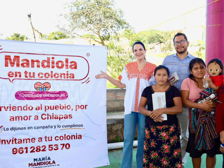 La diputada local del distrito 2 de Chiapas por Morena, María Mandiola, visitó la comunidad Vistahermosa de Berriozábal, en el marco del primer “Miércoles de Mandiola en tu Colonia”, iniciativa que da seguimiento a los “Lunes de Parlamento Abierto”, con un formato que busca acercar a la ciudadanía las audiencias públicas con la legisladora local.