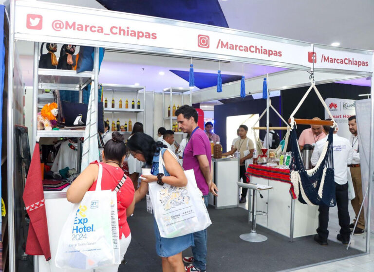 La Secretaría de Economía y del Trabajo (SEyT), que encabeza Carlos Salazar Estrada, en coordinación con la Estrategia Marca Chiapas, otorga todas las facilidades a empresas chiapanecas dedicadas a la elaboración de textiles, café, salsas y hamacas con el objetivo de participar en la vigésimo séptima edición de la Exphotel 2024, que se desarrolló en Cancún Quintana Roo del 11 al 13 de junio del presente.