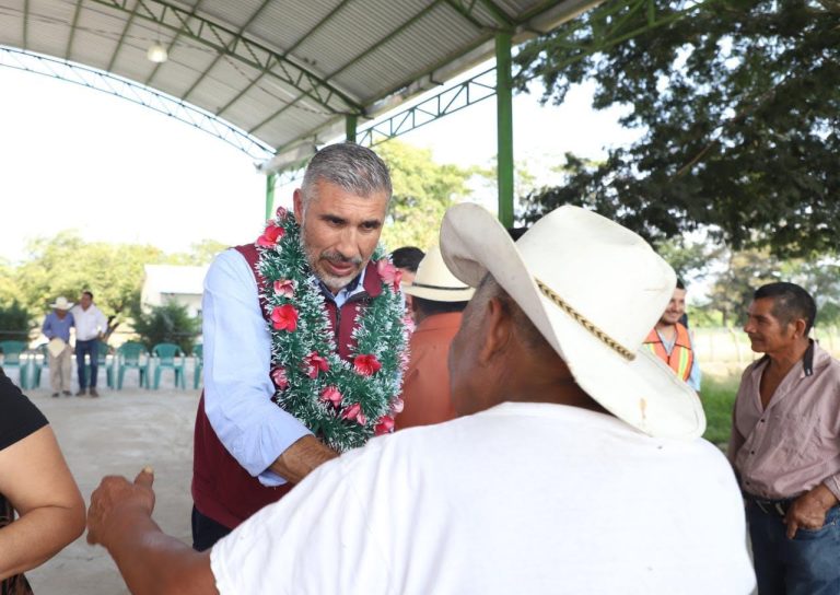 En otro momento y en la comunidad de Benito Juárez, Ángel Torres y familias del lugar corroboraron el avance de la construcción del polideportivo, que comprenden dos canchas, una de ellas con domo, donde pronto las niñas, niños y jóvenes, tendrán un espacio digno para practicar actividades deportivas y de sana convivencia.