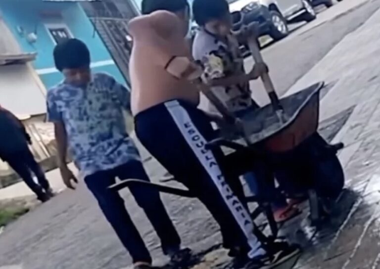 En medio del abandono por parte de las autoridades municipales, un grupo de niños salió a tapar los baches de su calle en la cabecera municipal de Ocosingo, Chiapas, utilizando tierra y piedras para intentar mejorar las condiciones de tránsito.