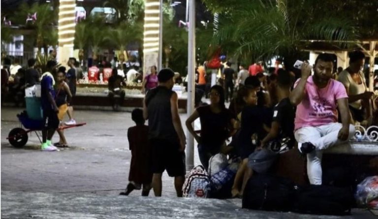 Muchos que no han podido acomodarse en alguna habitación de hotel o pensión, pasan las horas y los días a la intemperie en el parque Central Miguel Hidalgo y otros sitios públicos donde encuentran cobijo.