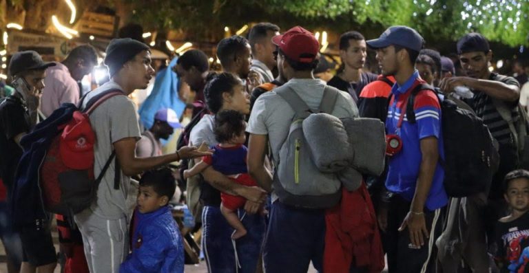 Eudis Jesús Camacal, un migrante venelozano, comentó que desde la madrugada llegaron al parque central Miguel Hidalgo, para entregarse a las autoridades migratorias para que puedan obtener los oficios de salida y el documento de la Fórmula Migratoria Múltiple (FMM).