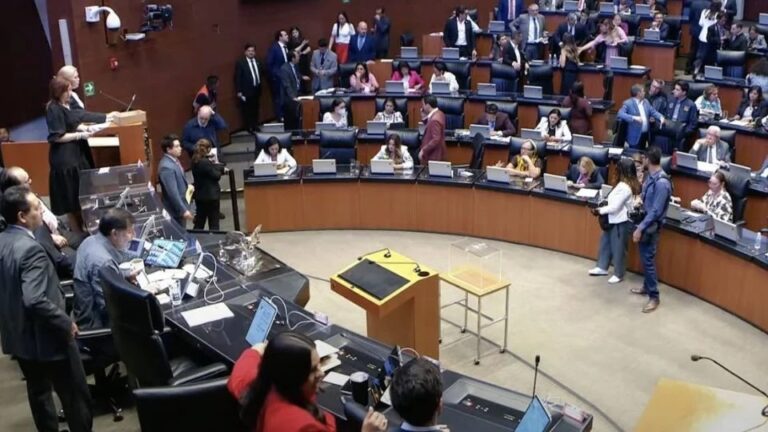 “No se reúnen las dos terceras partes”, exclamó la secretaria de la Mesa Directiva del Senado, la morenista Verónica Camino.