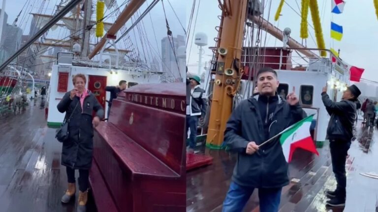 Morenistas subieron recientemente a promocionar la elección judicial en el Buque Escuela Cuauhtémoc, previo al impacto de este sábado contra el puente de Brooklyn.