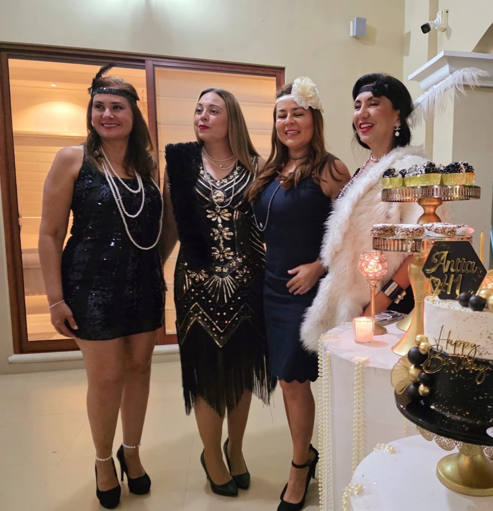 En días pasados, nuestra amiga Ana Reyes celebró un onomástico más y con tal motivo invitó a sus amigos más cercanos a una fiesta en la que la temática fue muy clásica, de los años 20’s y 30’s, y por lo que podemos ver en las imágenes, todos se la pasaron de lo mejor deseándole a Ana muchas felicidades, a lo que nos unimos desde esta mesa de redacción…