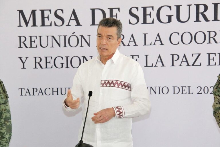 Tapachula, Chis.-En el municipio de Tapachula, el gobernador Rutilio Escandón Cadenas encabezó la Mesa de Coordinación Estatal para la Construcción de la Paz y la Seguridad, donde informó que, de acuerdo con el pronóstico meteorológico, van a continuar las lluvias en Chiapas, pero con mayor intensidad en los municipios de las regiones Norte, Selva, De Los Bosques, Sierra, Istmo-Costa y Soconusco.
