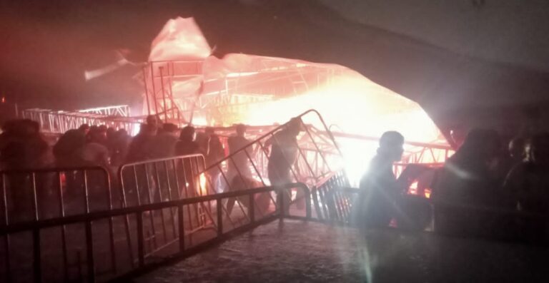 El alcalde de San Pedro, Miguel Treviño, informó que fuertes ráfagas de viento no esperadas provocaron que el escenario y las torres de iluminación y sonido cayeran.