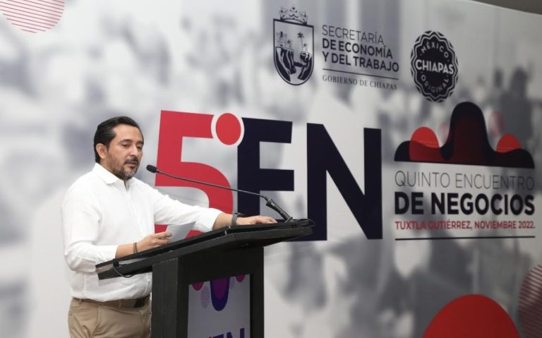 Con el objetivo de impulsar la comercialización de los productos chiapanecos con compradores nacionales e internacionales, el Gobierno del Estado que encabeza Rutilio Escandón Cadenas, a través de la Secretaría de Economía y del Trabajo (SEyT), organizó el 5º Encuentro de Negocios 2022, efectuado en el Salón Las Nubes, del Hotel Holiday Inn en Tuxtla Gutiérrez.