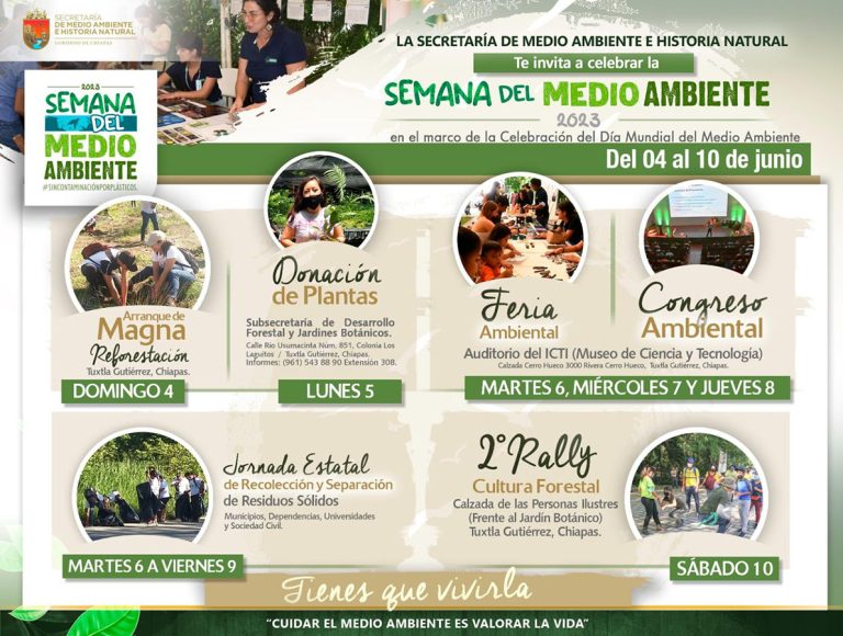 Para mayores detalles sobre las demás actividades de la Semana del Medio Ambiente 2023, se puede visitar las redes sociales y conocer todas las actividades que se llevarán a cabo del 4 al 10 de junio.