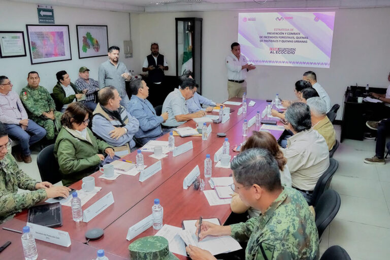Tuxtla Gutiérrez, Chiapas.- Con el objetivo de disminuir el impacto social, económico y ambiental de los incendios, a través de acciones estratégicas con un enfoque humanista, que promueva la coordinación interinstitucional, la aplicación de la ley, respetando los derechos humanos en beneficio de las chiapanecas y chiapanecos, por indicaciones del mandatario estatal, Eduardo Ramírez Aguilar, el grupo coordinador continúa manteniendo reuniones continuas.
