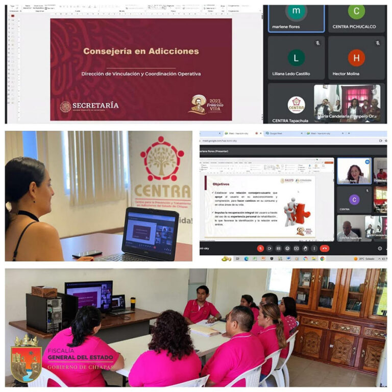 Esta acción de llevo a cabo a través de una plataforma virtual, misma en que la maestra Marlene Flores Mares, Directora de CECOSAMA Comitán y Psicóloga Especialista en Adicciones fue quien brindo esta información al personal participante.