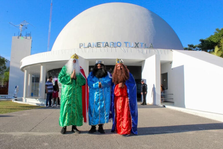 A invitación del director de la Agencia Digital Tecnológica, Jovani Salazar, los 3 Reyes de Oriente, Melchor, Gaspar y Baltazar llevaron sorpresas y alegría a las y los pequeños que asistieron este domingo al Planetario Tuxtla.