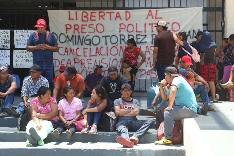 Habitantes de la colonia Paso Achiote, en Chiapa de Corzo, se manifestaron este lunes frente al Palacio de Gobierno del estado para exigir la liberación de Domingo Torres Patistán, detenido desde el 10 de junio, así como la cancelación de las órdenes de aprehensión contra otros seis miembros de su comunidad.