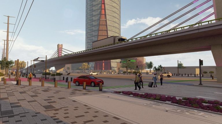 Es importante informar que esta obra contará con una longitud de más 700 metros lineales, ocho ejes de apoyo y un claro mayor de 90 metros de longitud, con una altura superior a los 7 metros. Contempla banquetas, ciclovía, jardineras, guarniciones, alumbrado, semaforización peatonal y vehicular, mobiliario urbano, bahías de ascenso y descenso del transporte público, señalética, entre otros aditamentos urbanos.
