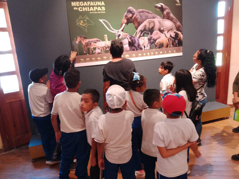 En un marco de colaboración interinstitucional, el Museo de Paleontología Eliseo Palacios Aguilera de la Secretaría de Medio Ambiente e Historia Natural (Semahn), realizó el montaje de la exposición temporal “Megafauna de Chiapas”, en el Museo de Tapachula (Mutap), en la que se exhiben ejemplares fósiles de organismos que han sido rescatados en diferentes lugares de Chiapas.