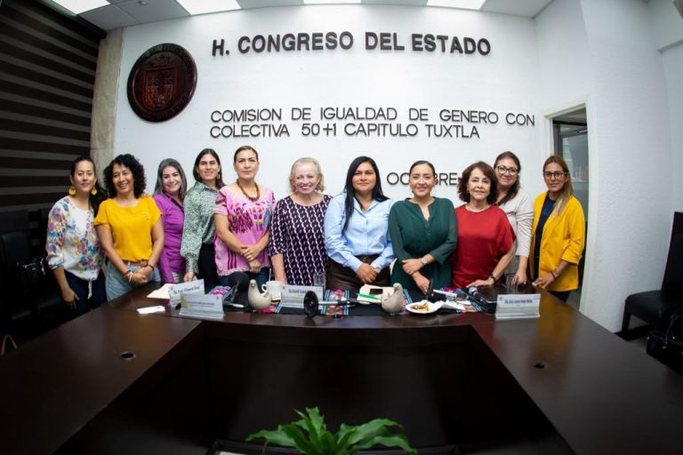 Tuxtla Gutiérrez, Chiapas; 04 de octubre de 2023. Integrantes de la Comisión de Igualdad de Género que preside la diputada local, Elizabeth Escobedo Morales se reunieron con la colectiva 50+1 Capitulo Tuxtla, donde abordaron temas concernientes a las reformas de ley aprobadas y presentadas orientadas a promover y garantizar la igualdad sustantiva.