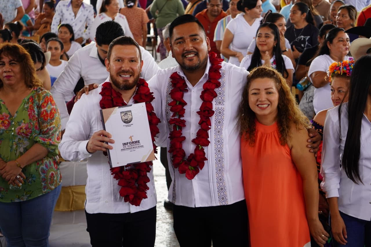 Durante su mensaje, el alcalde destacó los avances obtenidos en infraestructura, con la construcción y rehabilitación de calles, caminos rurales, sistemas de drenaje y redes de agua potable, obras que han mejorado significativamente la calidad de vida de los habitantes de la cabecera municipal y de las comunidades.