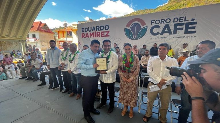 Con la finalidad de mejorar la calidad de vida de los cafeticultores de Chiapas de México, éste fin de semana se llevó a cabo el foro nacional del café convocado por el Senador Eduardo Ramírez en el que miles de productores del aromático grano se congregaron en el municipio de Motozintla participando activamente en la elaboración del proyecto de iniciativa de Ley de producción del café que brindará mejores condiciones de vida a las familias de chiapanecos y mexicanos que viven de la noble labor de producir el otrora llamado oro verde.