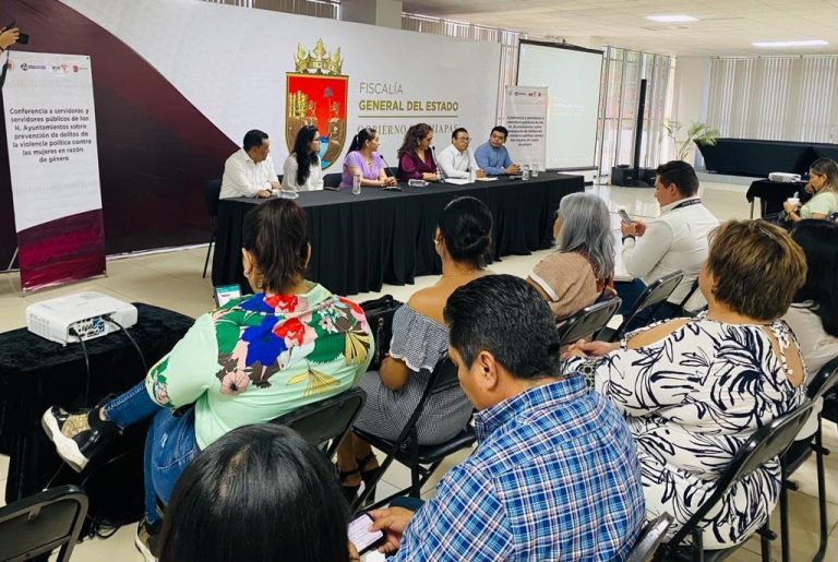 Tuxtla Gutiérrez, Chis.-La Fiscalía General del Estado (FGE), la Fiscalía de Delitos Electorales (FDE), en conjunto con el Instituto de Elecciones y Participación Ciudadana (IEPC), el Tribunal Electoral del Estado de Chiapas (TEECH) y el H. Congreso del Estado, impartió una conferencia sobre prevención de delitos de Violencia Política contra las Mujeres en Razón de Género dirigida a las y los servidores públicos municipales de la región Centro.