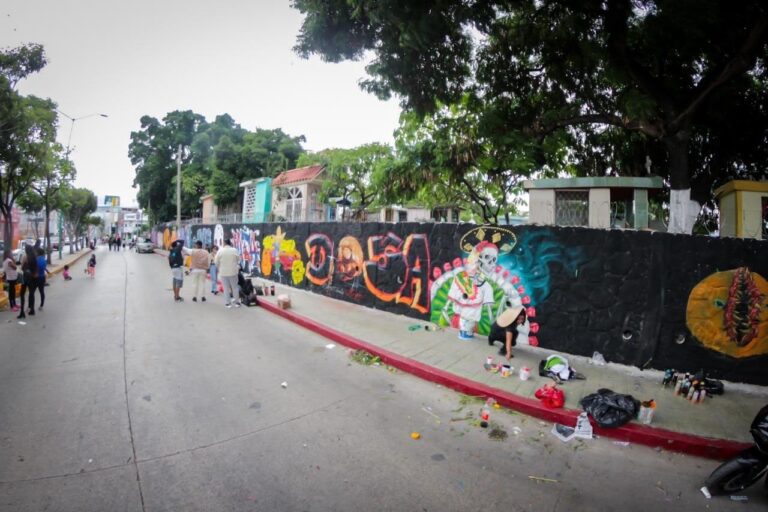 Tuxtla Gutiérrez, Chis.-El Ayuntamiento de Tuxtla Gutiérrez encabezado por Carlos Morales a través del Instituto de la Juventud y del Emprendimiento, realizó la intervención de la barda perimetral del Panteón Municipal. En el marco del día de muertos, juventudes muralistas y artistas a convocatoria del INJUVEMP, plasmaron parte de la cultura zoque y mexicana alusiva al Día de muertos.
