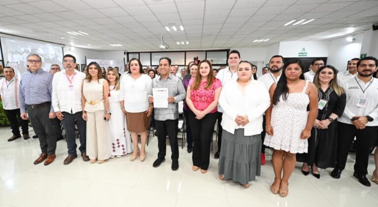 En el Instituto de Elecciones y Participación Ciudadana (IEPC) de Chiapas, este domingo 17 de marzo, las integrantes del Consejo General, María Magdalena Vila Domínguez, presidenta provisional, la consejera Sofía Martínez De Castro León, el consejero Edmundo Henríquez Arellano y las consejeras Teresa de Jesús Alfonso Medina, Helena Margarita Jiménez Martínez y Gloria Esther Mendoza Ledesma, así como el secretario ejecutivo, Manuel Jiménez Dorantes y la directora ejecutiva de Asociaciones Política, Andrea del Rosario Méndez Zamora, recibieron la solicitud del registro de candidatura a la Gubernatura del Estado de la Coalición “Sigamos Haciendo Historia en Chiapas”.