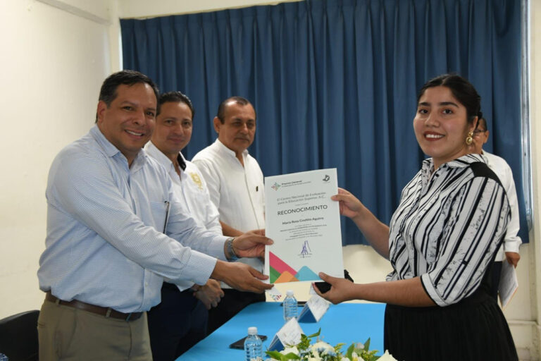 Tapachula, Chiapas. – Autoridades de la Benemérita Universidad Autónoma de Chiapas, encabezadas por el secretario Académico, Florentino Pérez Pérez, entregaron el Premio a la Excelencia Académica CENEVAL-EGEL Plus a egresados de la UNACH, acto que se celebró en la sala audiovisual de la Facultad de Ciencias de la Administración del Campus IV Tapachula.