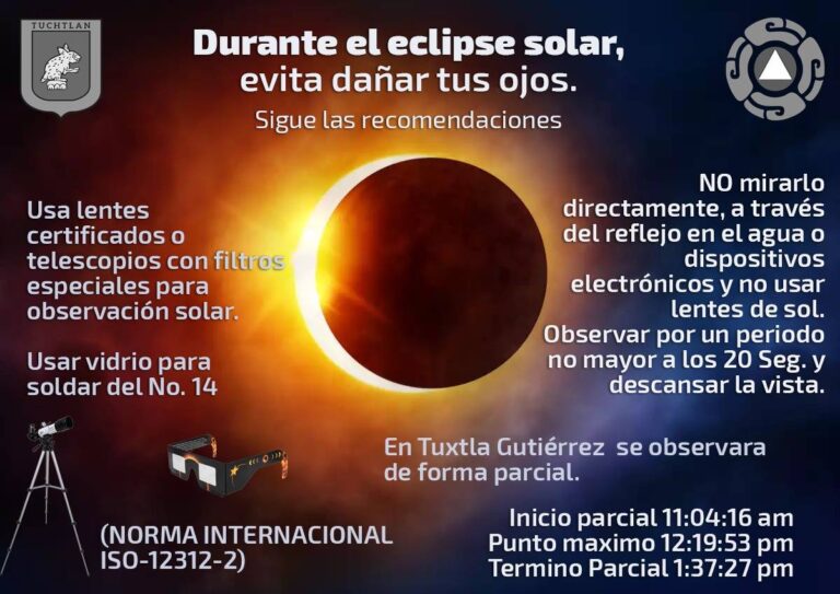 - No intente mirar directamente el Sol durante el fenómeno. Esto puede dañar severamente su retina.