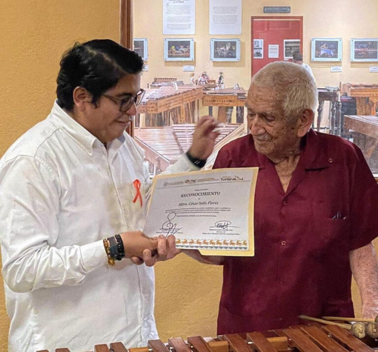 El maestro César Solís Flores, acompañado de sus familiares, recibió el reconocimiento en un ambiente de celebración al ritmo de la marimba. Durante la ceremonia, se reafirmó el compromiso de mantener viva esta tradición y dar valor a sus intérpretes, cuya dedicación ha dado identidad y orgullo al pueblo de Chiapas.