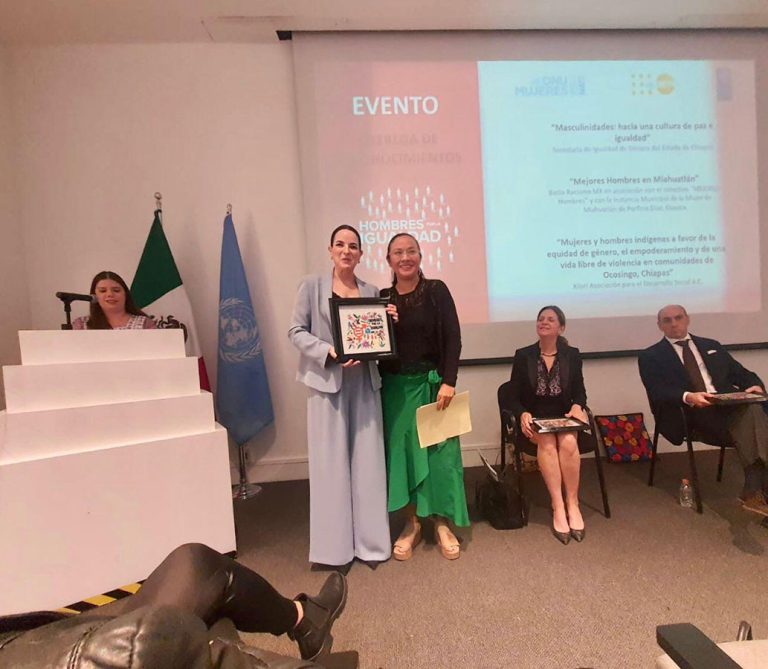 En el Museo del Arte Popular de la Ciudad de México, el Programa de las Naciones Unidas para el Desarrollo (PNUD), el Fondo de Población de las Naciones Unidas (UNFPA) y ONU Mujeres, reconocieron a la Secretaría de Igualdad de Género (Seigen), del Gobierno de Chiapas, por la iniciativa “Masculinidades: hacia una cultura de paz e igualdad”, implementada desde el 2019 en Chiapas, siendo pionera a nivel nacional en impulsar el tema en la Administración Pública y en municipios.
