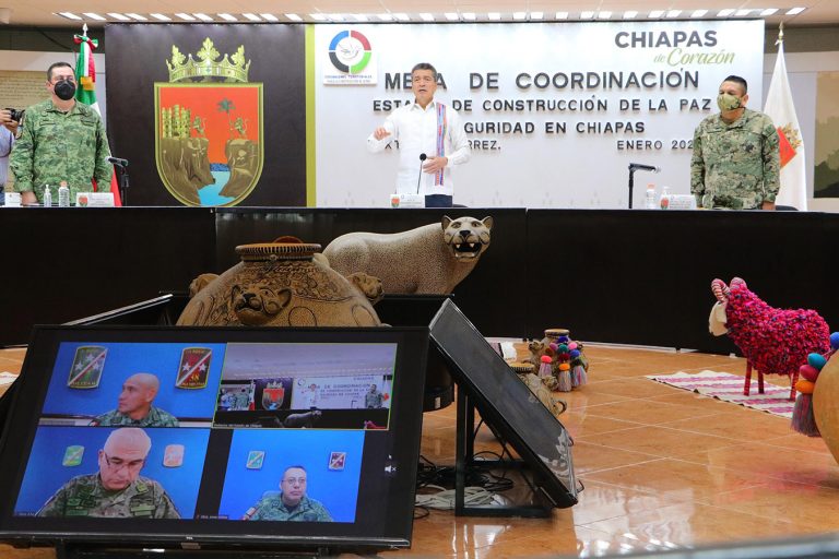 En este marco interinstitucional, el mandatario estatal destacó las acciones que llevan a cabo de manera conjunta las fuerzas de seguridad de los tres órdenes de Gobierno para atender y garantizar la tranquilidad y el bienestar de las y los chiapanecos.